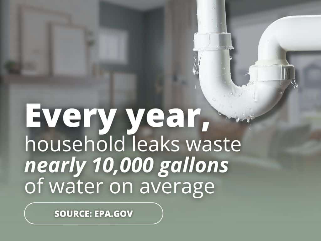 According to the Environmental Protection Agency (EPA), household leaks waste nearly 10,000 gallons of water every year on average.